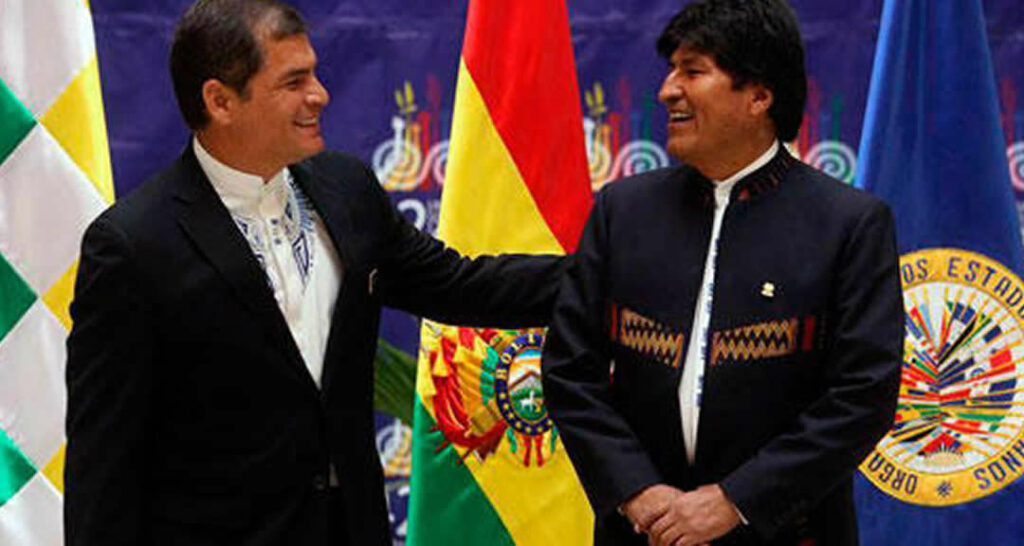 Foto: Rafael Correa y Evo Morales, publicada por la Voz del Sandinismo, el 23 de julio del 2013.