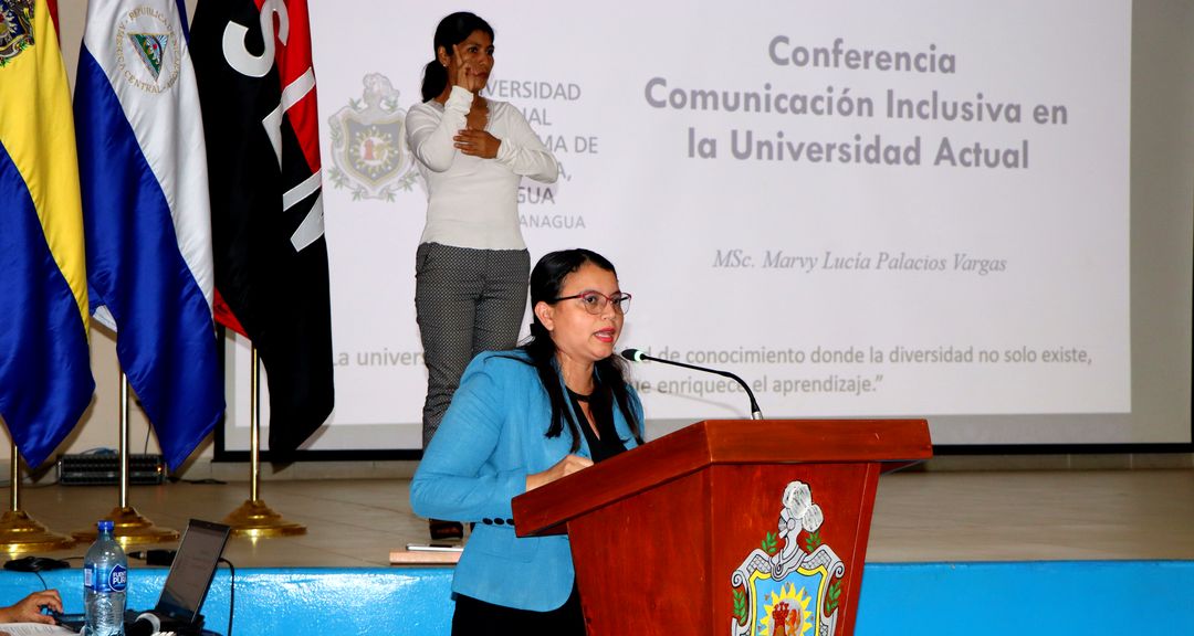 Estudiantes y docente protagonizaron la conferencia Comunicación Inclusiva en la Universidad Actual, organizada por el Área de Conocimiento de Ciencias Económicas y Administrativas conforme a los lineamientos de la Estrategia Nacional de Educación, que promueve una educación centrada en el desarrollo integral del ser humano.