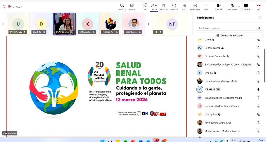 La enfermedad renal crónica avanza silenciosamente en el mundo y su incidencia ha aumentado cerca de un 40 % en las últimas décadas, convirtiéndose en un desafío creciente para los sistemas de salud. En este contexto, el webinario «Prevención de la Enfermedad Renal: actuemos a tiempo», desarrollado en el marco del Día Mundial del Riñón, conmemorado cada 12 de marzo, promovió la reflexión sobre la importancia de la prevención y la detección temprana.