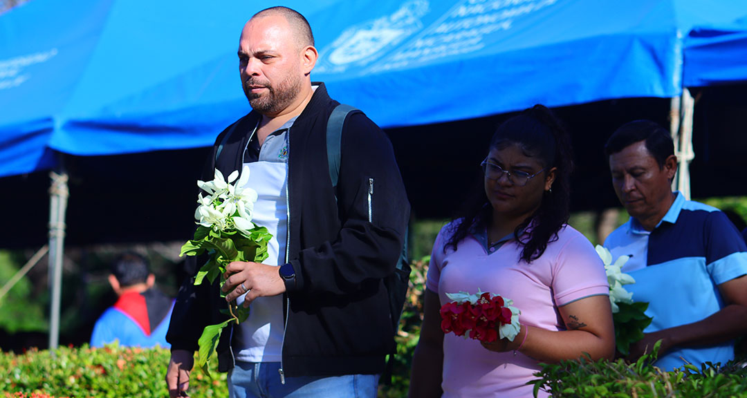 A 110 años del tránsito a la inmortalidad de Rubén Darío, Poeta Universal y máximo representante del Modernismo Literario, la militancia sandinista de la UNAN-Managua realizó colocación de flores en el monumento dedicado en su honor en el recinto universitario que lleva su nombre, fundado hace más de 60 años.
