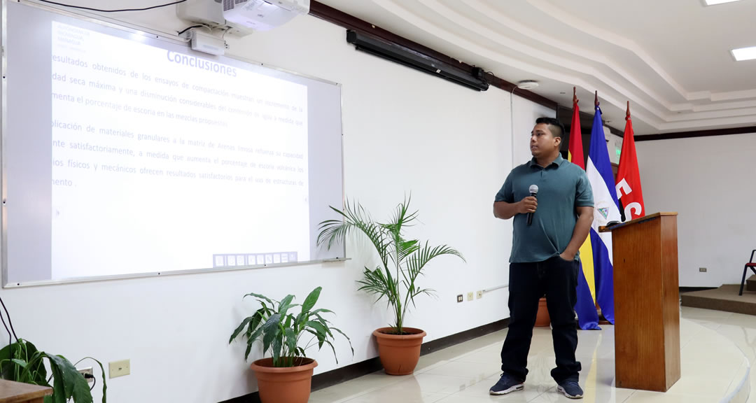 Los avances de tesis estuvieron enfocados en diversas temáticas, entre ellas: la zonificación geológica, análisis de acuífero Tipitapa-Malacatoya y Meseta de Los Pueblos; estudio hidrogeológico-geofísico para la perforación de un pozo en Las Conchitas, Masaya; monitoreo de pozos en el área de las Mercedes, Valle Gother y Ticuantepe; caracterización geológica y geotécnica de los bancos de materiales y análisis morfoestructural del geositio Laguna La Bruja, Madriz.