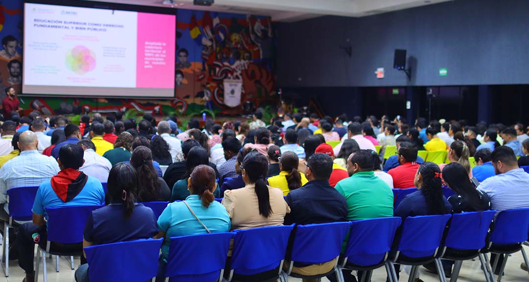 Esta iniciativa contó con la disertación del maestro Luis Miguel Martínez Olivera, director de Planificación y Desarrollo de la SETEC, quien compartió los indicadores que reflejan el impacto del modelo de educación gratuita, inclusiva y de calidad en las 13 Universidades Pueblo Presidente, que cuentan con una matrícula de más de 200 mil protagonistas en 58 sedes en todo el territorio nacional, brindando a la juventud del campo y la ciudad más de 200 carreras de grado.