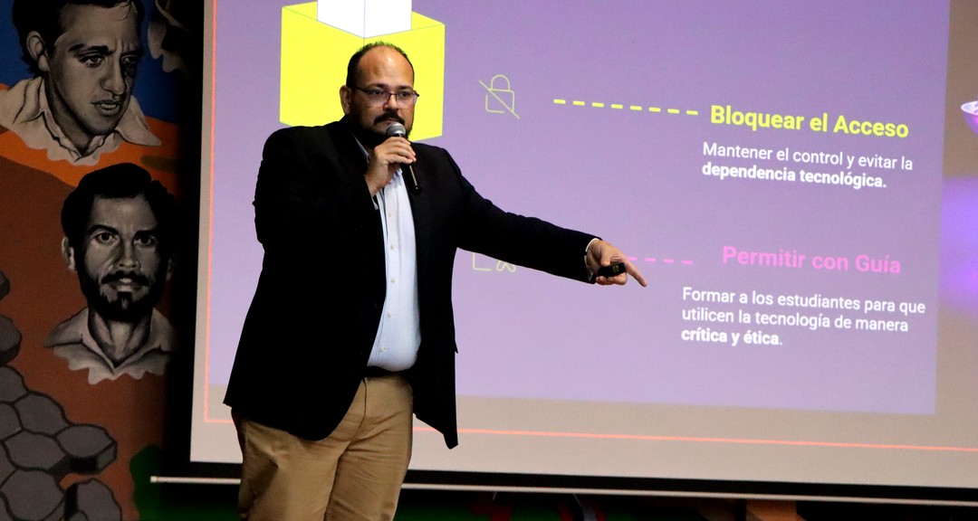 Durante el encuentro, se propició la reflexión sobre temas de gran relevancia en el contexto educativo actual, como la igualdad de acceso a la inteligencia artificial, la privacidad de los datos y las diversas utilidades de las aplicaciones basadas en IA. Asimismo, el ponente abordó los mecanismos y técnicas de aprendizaje apoyados por estos recursos virtuales, junto con experiencias sobre su uso responsable, las normativas vigentes y los derechos de autor en entornos digitales.