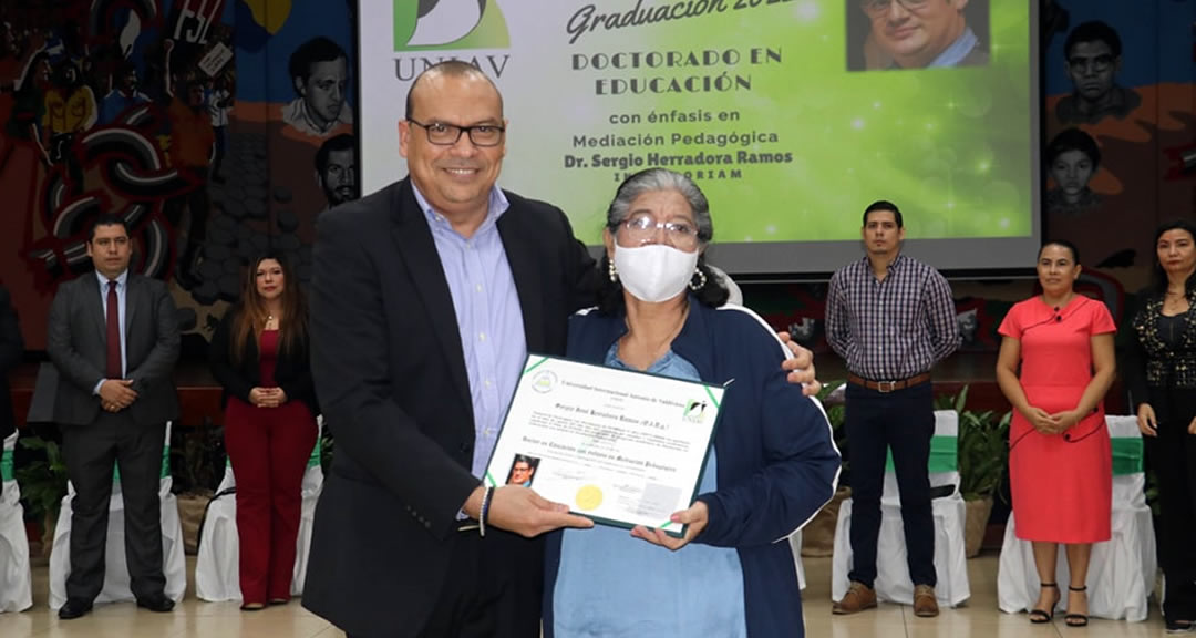 En el Auditorio Fernando Gordillo de la UNAN-Managua, se llevó a cabo la primera graduación del Doctorado en Educación con Énfasis en Mediación Pedagógica, impartido por la Universidad Internacional Antonio de Valdivieso (UNIAV). La ceremonia fue dedicada al profesor Sergio Herradora (q. e. p. d), quien formó parte de esta primera cohorte.