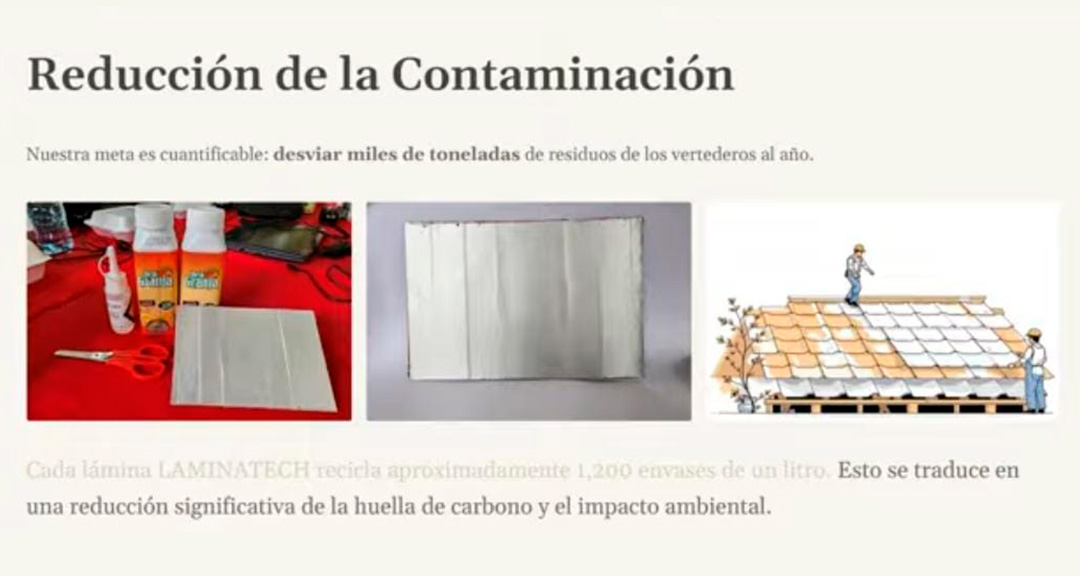 Los futuros profesionales pensaron en que las cajas de Tetra PAK contienen varios materiales, entre estos cartón, plástico y aluminio, por lo que estos últimos dos podrían ser utilizados para fabricar láminas que sirvan de techo, puesto que el plástico es impermeable y el aluminio puede servir como capa para protección del agua y aislante a la vez, por lo que asumieron que si los unían se podía hacer un proceso de compactación, de manera que aportarían a evitar la contaminación ambiental por exceso de estas cajas, y a su vez, resolver una necesidad básica en personas de escasos recursos, el poder contar con techo digno, de bajo costo y seguro.